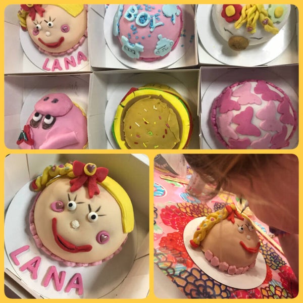 We gaan dan een boltaartje doorsnijden, vullen, afsmeren en decoreren. Als alle taartjes klaar zijn, krijgen de kinderen deze in een taartdoosje mee naar huis.