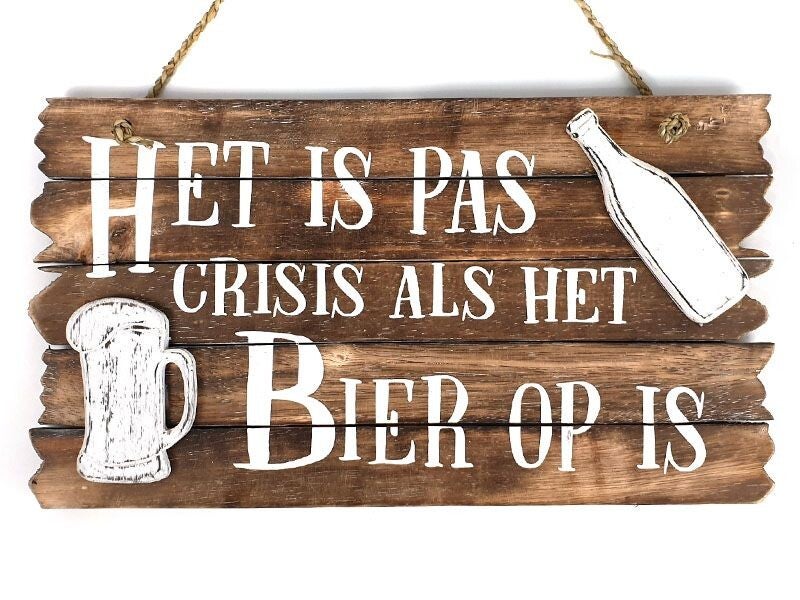 Tekstbord 26x45 cm "crisis als het bier op is"