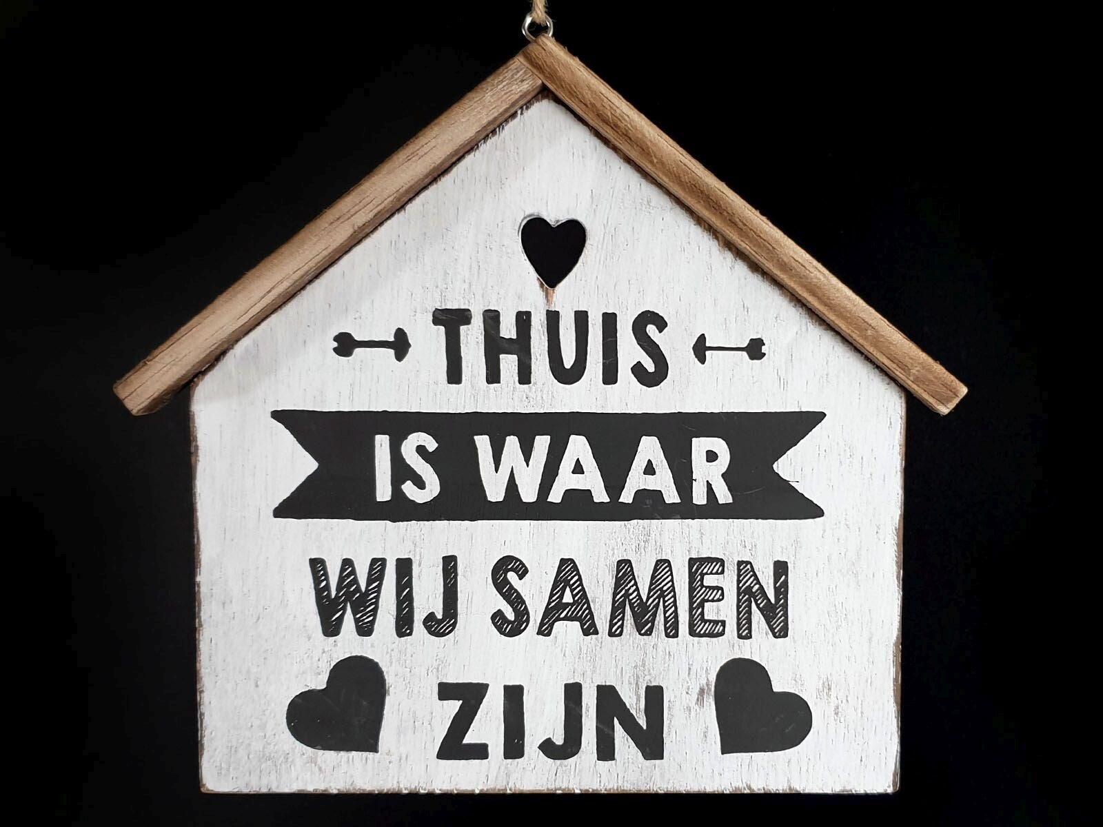 Tekstbord huisje 24x21 cm "thuis is waar wij samen zijn"