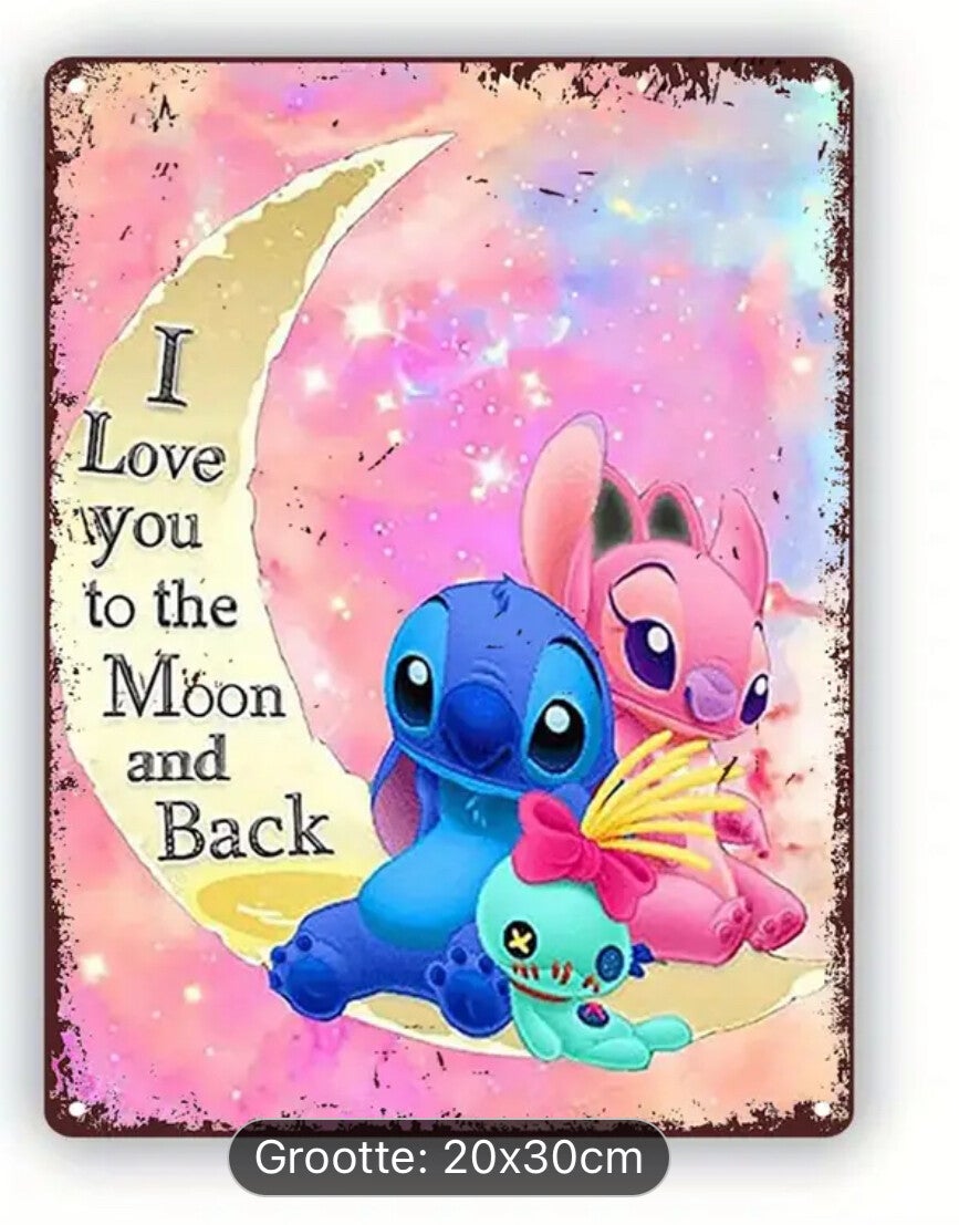 Metalen bord Stitch en Angel maan