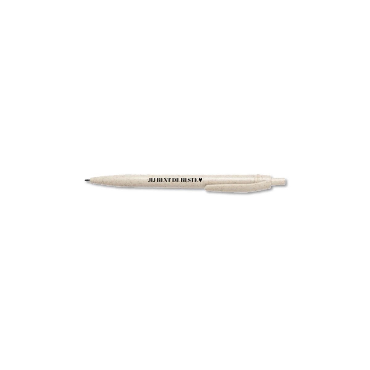 Deze pen is altijd leuk om cadeau te doen! Hij is gemaakt van tarwestro, om het gebruik van natuurlijke grondstoffen te stimuleren en de uitstoot van vervuilende stoffen te verminderen. Hij schrijft blauw.