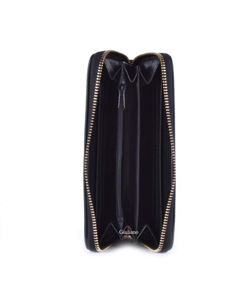 Kunstlederen portemonnee met licht metallic sterren in bijpassende kleur. De portemonnee sluit met een rits.