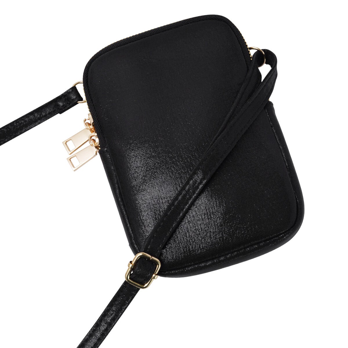 Trendy crossbody in glanzende metallic kleuren. Bevat een ritssluiting en wordt geleverd met een verstelbare riem.